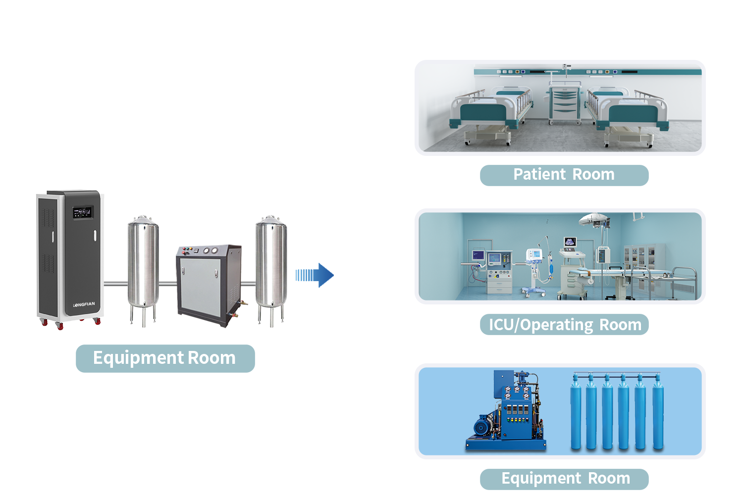 For hospital with 5-100 beds; For ICU and operating rooms; For cylinder filling plant
